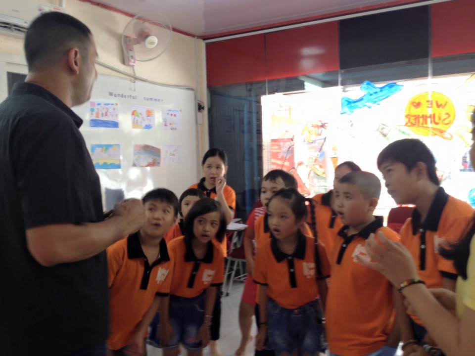 Tới trung tâm ngoại ngữ các bé được tiếp xúc với môi trường mới lạ hơn so với ở nhà hay ở trường mầm non. Nơi đây, thầy cô sẽ hướng dẫn các chú chim non làm quen với bạn mới. Nhiều trò chơi thú vị, những câu chuyện tiếng Anh hấp dẫn kích thích các bé giao tiếp, trao đổi thông tin. Tất cả hoạt động diễn ra trong lớp học giúp trẻ phát triển khả năng giao tiếp. Ngày qua ngày, các bé sẽ tự tin làm quen với tất cả những người mới gặp.