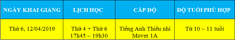 Khai giảng Tháng 4, Khóa học Tiếng Anh Thiếu nhi Mover cho bé từ 10 - 11 tuổi