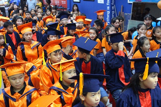 Các bé và phụ huynh tới dự lễ và cổ vũ các bạn nhận bằng