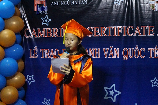 Tại buổi lễ, đại diện của TRUNG TÂM ANH NGỮ HÀ LAN là cô Trần Thị Hồng Huế đã có bài phát biểu và trao chứng chỉ cho 50 học viên Starters.