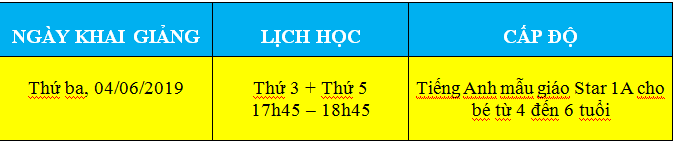 Anh ngữ Hà Lan Khai giảng 04/06 khóa học Tiếng Anh Mẫu giáo Star cho bé từ 4 đến 6 tuổi.