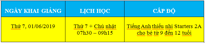 Khai giảng 01/06 khóa học Tiếng Anh Thiếu nhi Starters 2A cho bé từ 9 đến 12 tuổi
