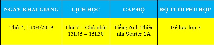 Khai giảng Tháng 4, Khóa học Tiếng Anh Thiếu nhi Starters 1A cho bé lớp 3