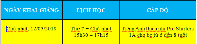Khai giảng tháng 5 khóa học Tiếng Anh Thiếu nhi Pre Starters 1A cho bé từ 6 đến 8 tuổi