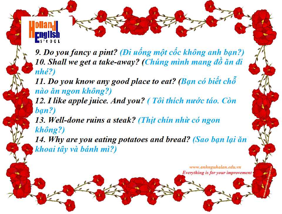 Mẫu câu giao tiếp cơ bản trong tiếng Anh về chủ đề ăn uống (2)