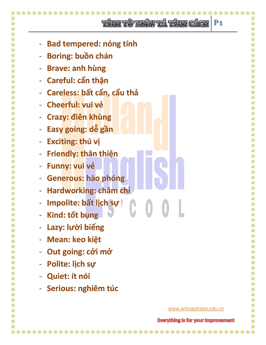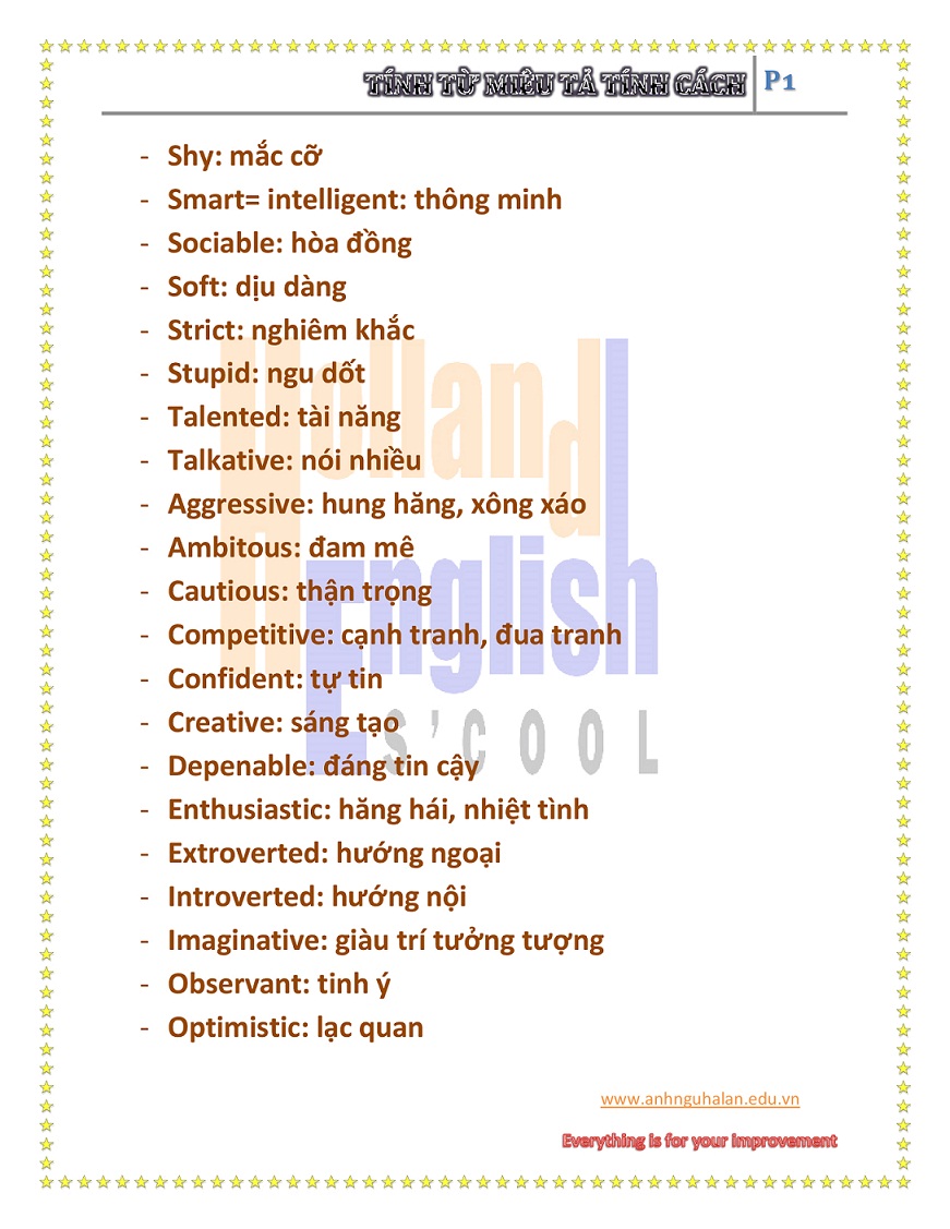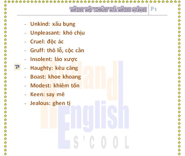 TÍNH TỪ MIÊU TẢ TÍNH CÁCH